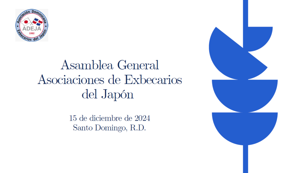 La Asamblea General ADEJA 2024, celebrada el 15 de diciembre de 2024 en Santo Domingo, recoge los principales lineamientos institucionales presentados por la directiva 2024–2026, incluyendo el informe de actividades, el plan de trabajo para 2025, los ejes de acción estratégicos, los avances alcanzados y la conformación de la comisión electoral para las elecciones de 2026. Este documento ofrece una visión integral del rumbo institucional de ADEJA, reafirmando su compromiso con la transparencia, el fortalecimiento organizativo y la cooperación entre Japón y la República Dominicana.